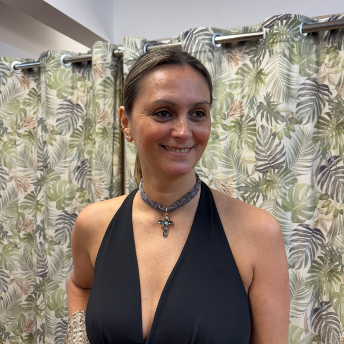 El collar "Noir" es pura intensidad y elegancia con un aire gótico chic. Su diseño tipo choker con malla negra y cruz de piedras oscuras lo convierte en una pieza poderosa, ideal para quienes buscan destacar con estilo y personalidad. Perfecto para looks de noche, vestidos escotados o conjuntos minimalistas, este accesorio añade un toque de misterio, fuerza y sofisticación.
