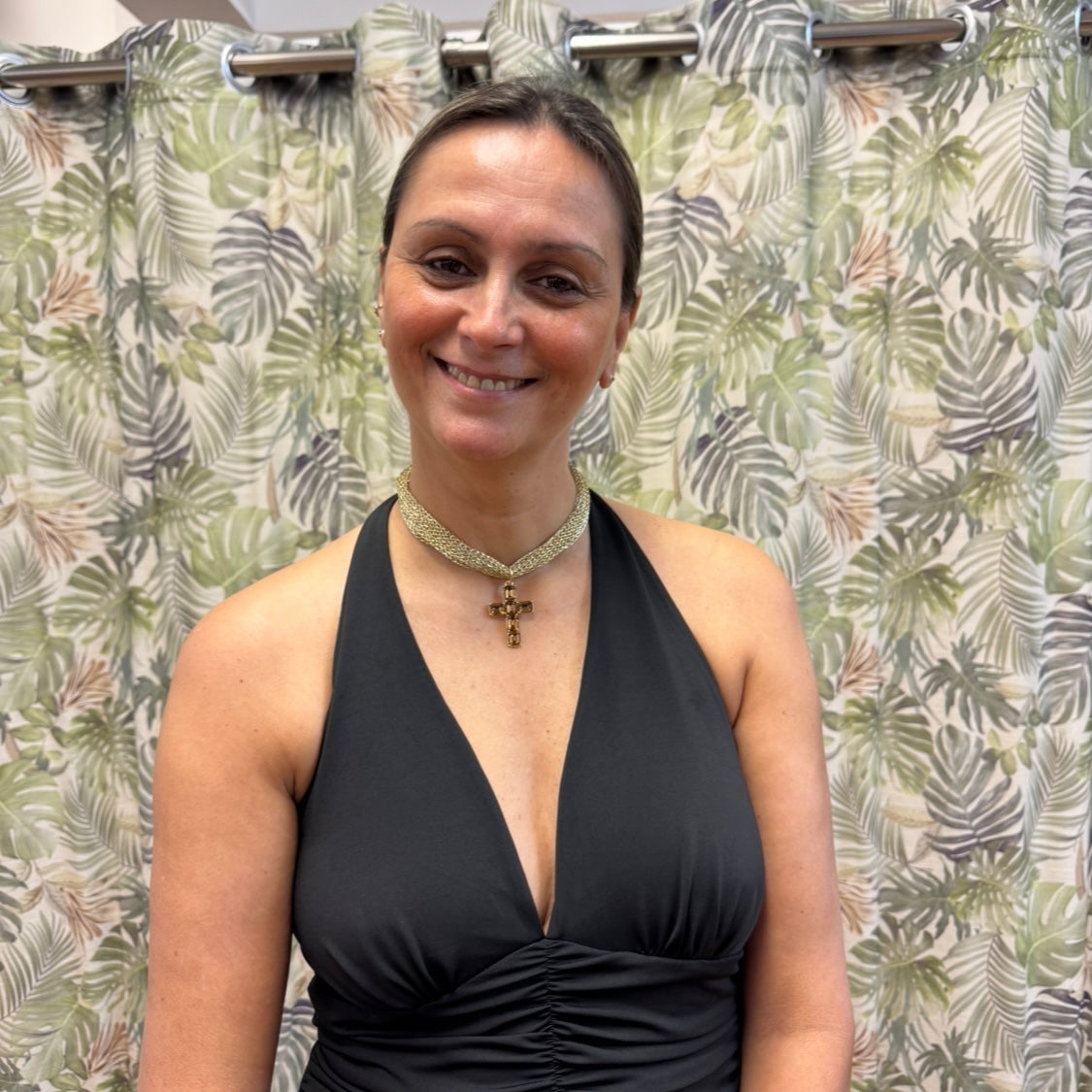 El collar "Noir" es pura intensidad y elegancia con un aire gótico chic. Su diseño tipo choker con malla negra y cruz de piedras oscuras lo convierte en una pieza poderosa, ideal para quienes buscan destacar con estilo y personalidad. Perfecto para looks de noche, vestidos escotados o conjuntos minimalistas, este accesorio añade un toque de misterio, fuerza y sofisticación. 🖤✨