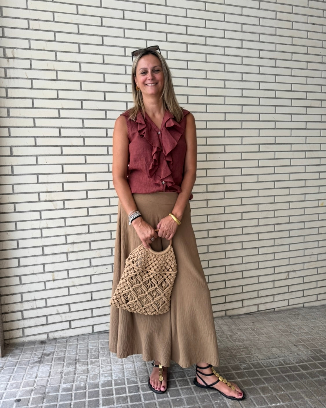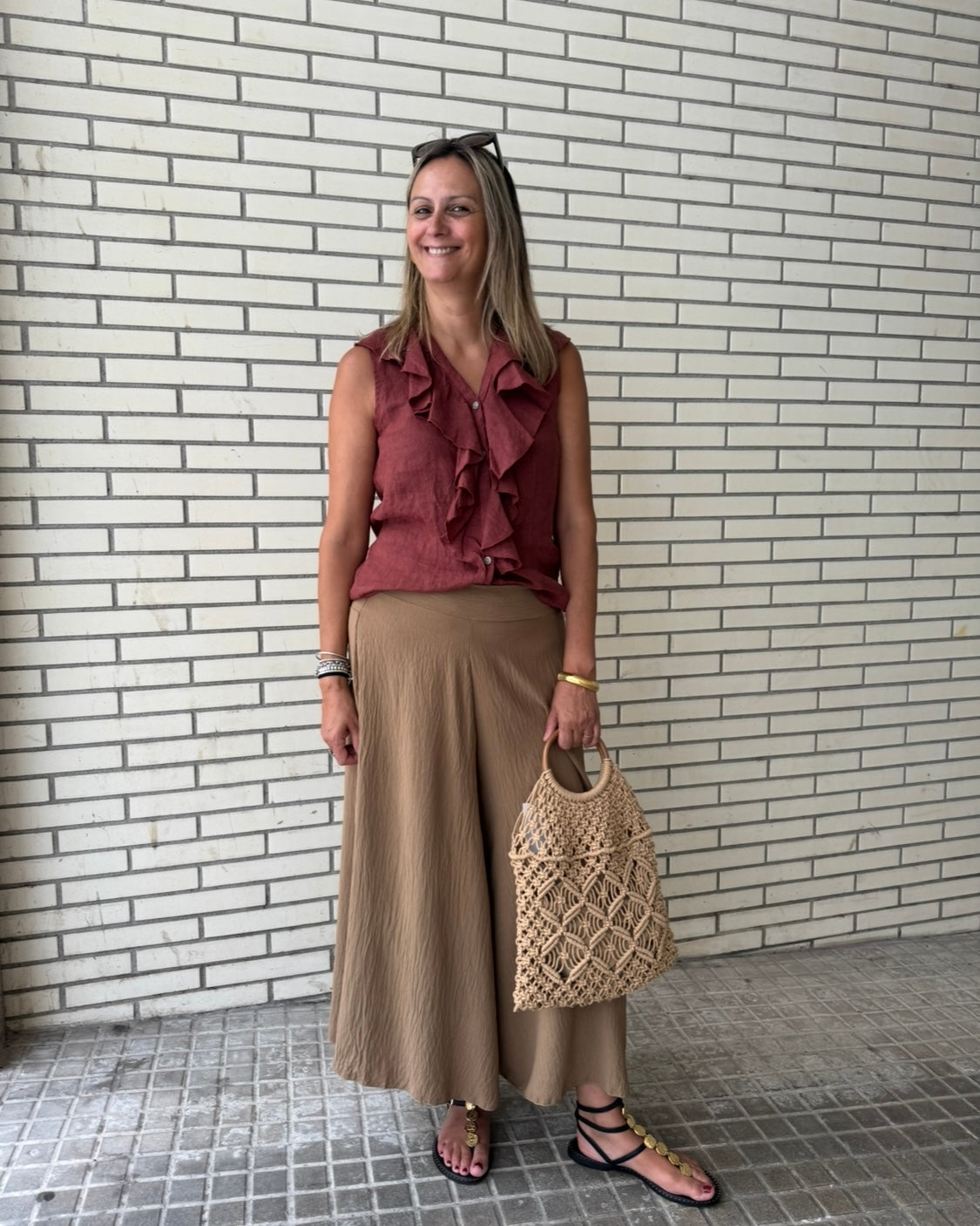 Te presento el pantalón Siena, que a primera vista parece una falda por lo ancho y fluido que es. En un tono camel súper versátil, es fresquito y cómodo gracias a su caída ligera y a la goma en la cintura por detrás, que se ajusta sin apretar. Ideal para esos días en los que quieres sentirte libre y con estilo sin renunciar a la comodidad. Combínalo con lo que quieras y dale tu toque personal.
