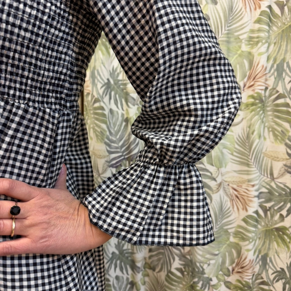 Romántico y con un aire campestre, el vestido Black Meadow destaca por su delicado estampado de cuadros vichy en tonos azul pastel. Su diseño de corte amplio con cuerpo fruncido, mangas abullonadas y detalles de volantes lo hacen perfecto para un look femenino y relajado. Ideal para combinar con botas o sandalias y brillar en cualquier ocasión.